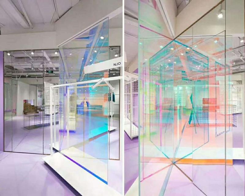 Colorful glass is a kind of glass that the colors change based on different angles of observer and angle of the sun.This effect appears because of a layer of thin metal coating which can change colors depends on different viewing angles and sunshine conditions. The coating has good hardness and scratch resistance. This glass is more durable than traditional glass. It is easy care and to clean.